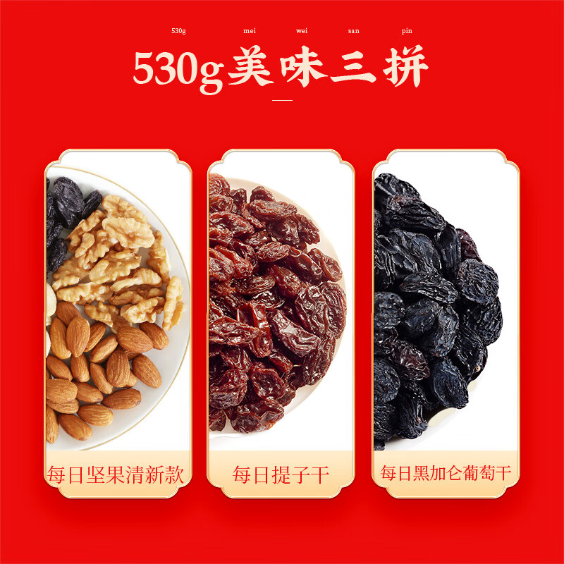 沃隆 每日坚果盒装节日礼盒送礼团购坚果炒货混合干果仁零食大礼包 530g每日果礼