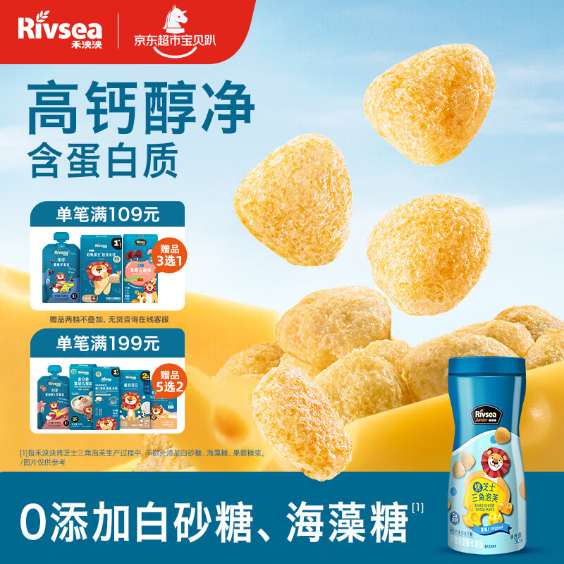 禾泱泱烤芝士三角泡芙原味30g 高钙含蛋白宝宝零食小巧易抓稻鸭大米