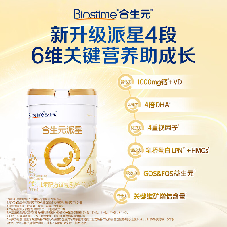 合生元(BIOSTIME)派星 学龄前儿童奶粉 自护力4段(3岁或以上)800g*1罐 乳桥蛋白