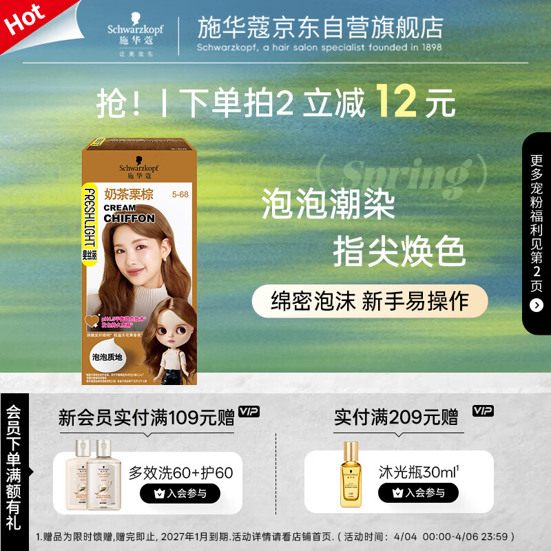 施华蔻(Schwarzkopf)斐丝丽泡泡染发剂5-68奶茶栗棕 染发膏自己染染发泡泡潮流彩染