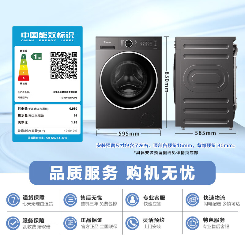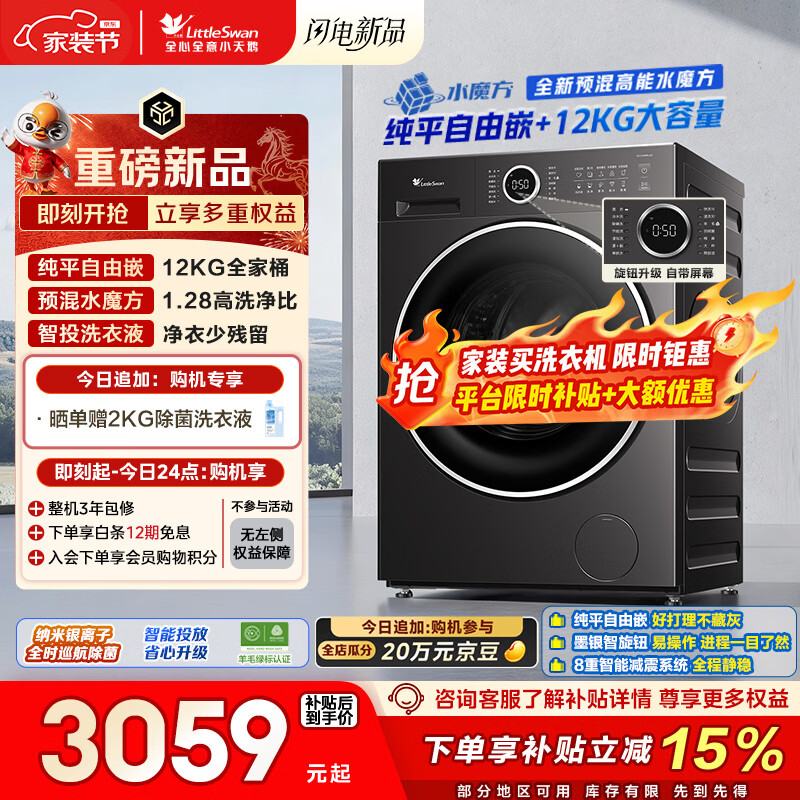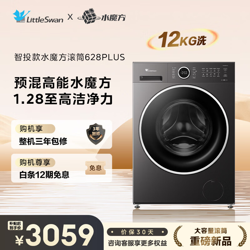 小天鹅(LittleSwan)滚筒洗衣机全自动家用 12KG水魔方 TG12V628PLUS 以旧换新 京东自营 内衣洗 一级能效
