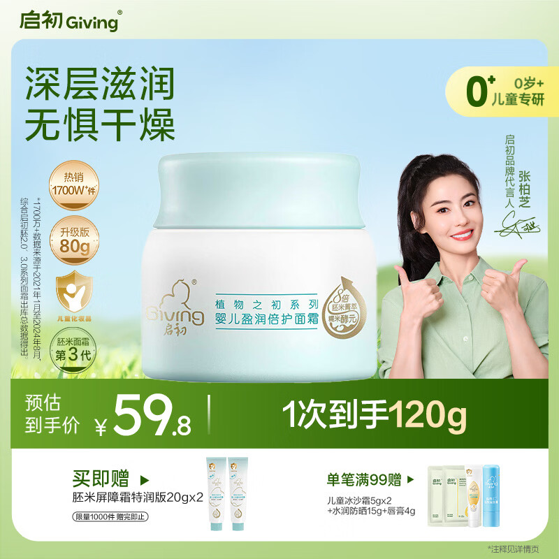启初胚米3.0盈润倍护面霜80g儿童面霜婴儿宝宝秋冬舒缓温和润肤滋润