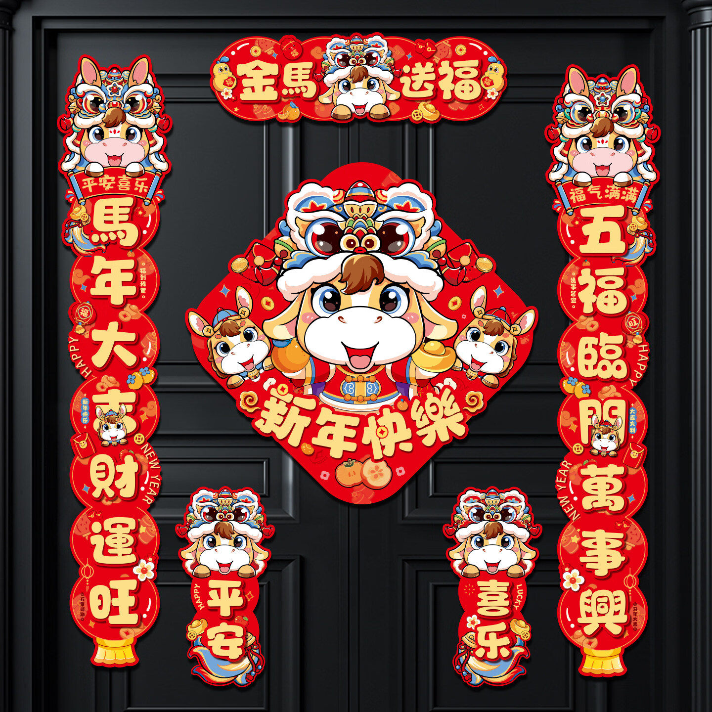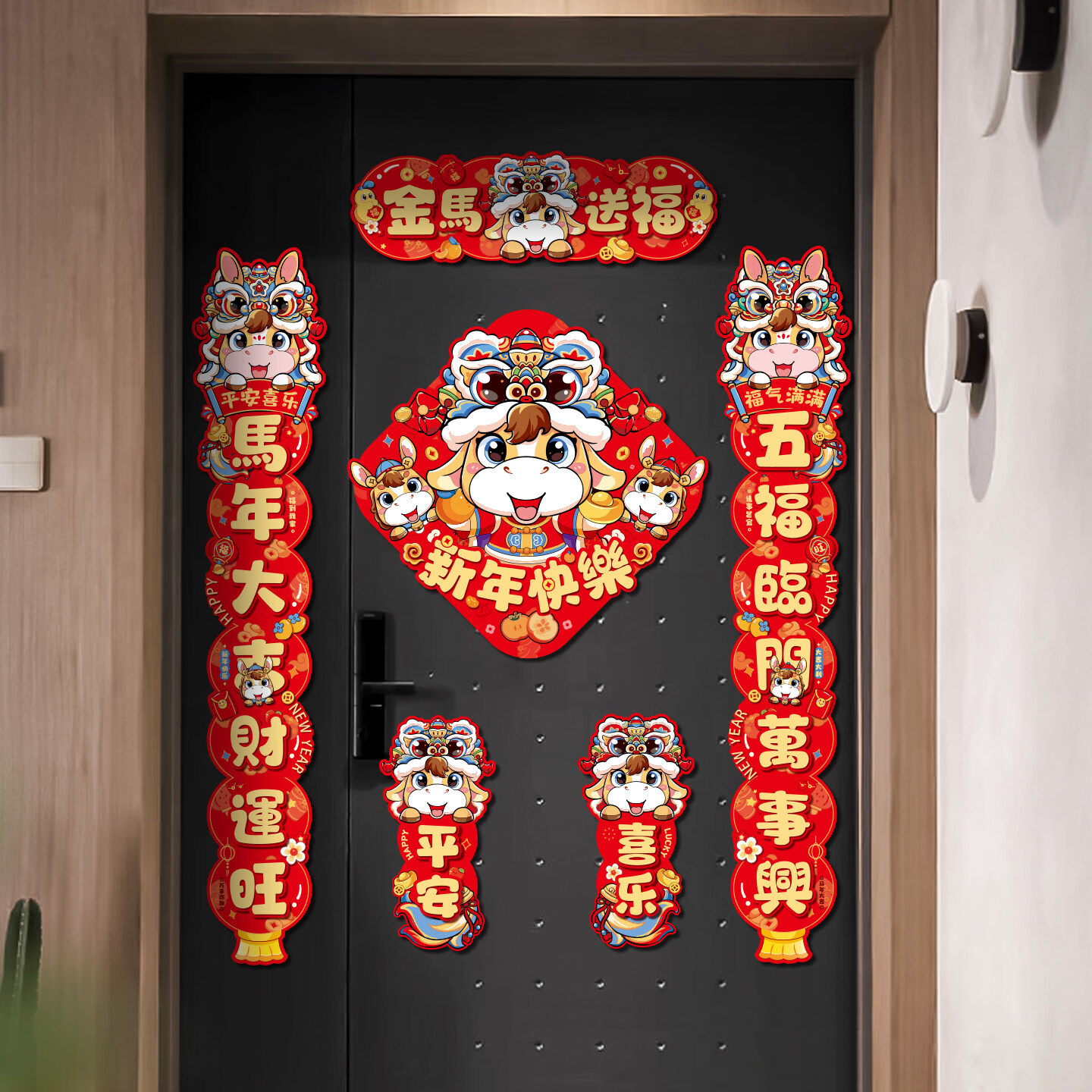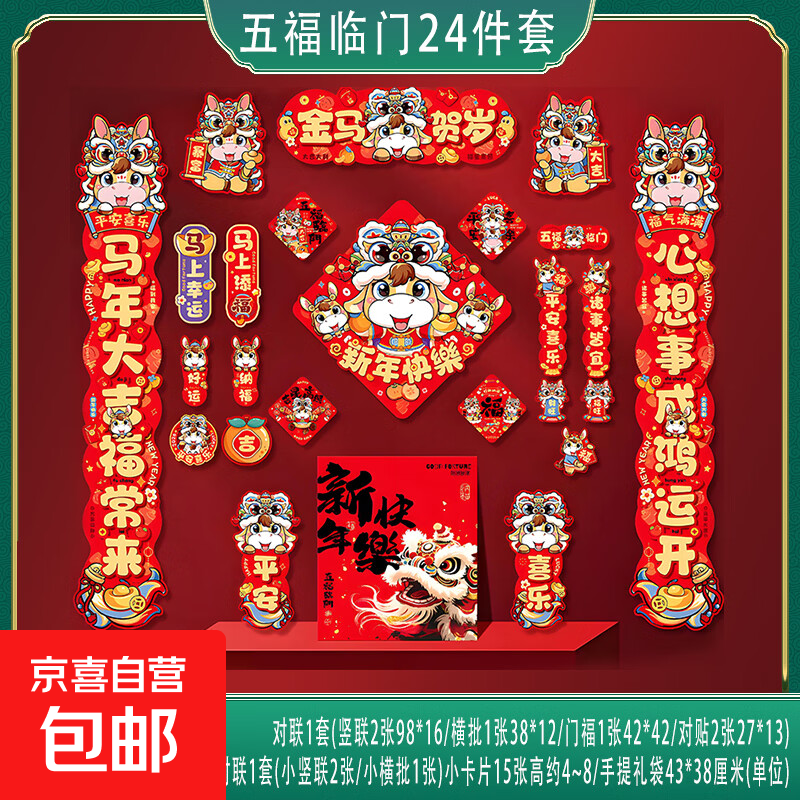 文创用品 2026马年创意对联室内客厅福字入户门贴新年春联氛围布置装饰 文创用品 五福临门-粘贴款【24件套】