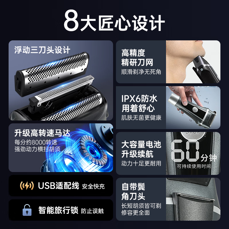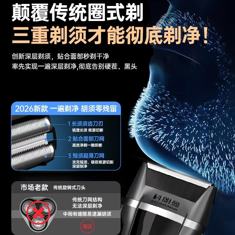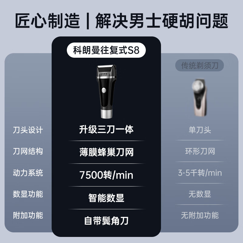 科朗曼剃须刀s8电动男士刮胡刀智能贴面设计往复式便携式送男友送父亲生日礼物 【店内热销】液晶数显/精研刀网/升级动力