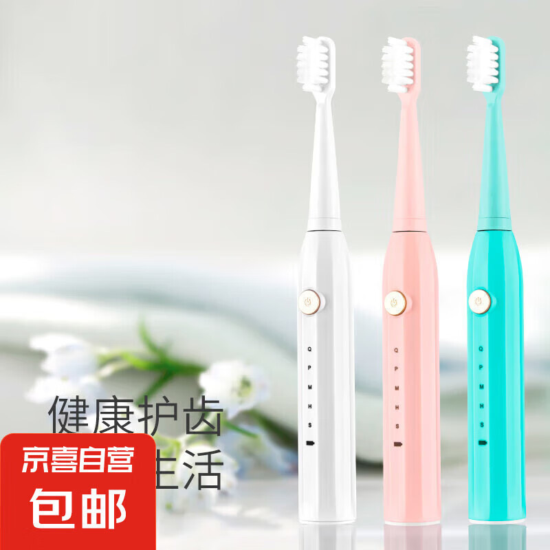 电动牙刷牙线套装成人声波超全自动 软毛护龈学生男士女士 成人儿童通用款 月光白电池款【牙线50支+3刷头】