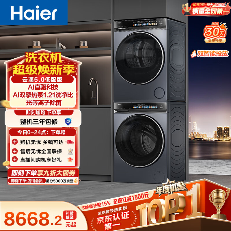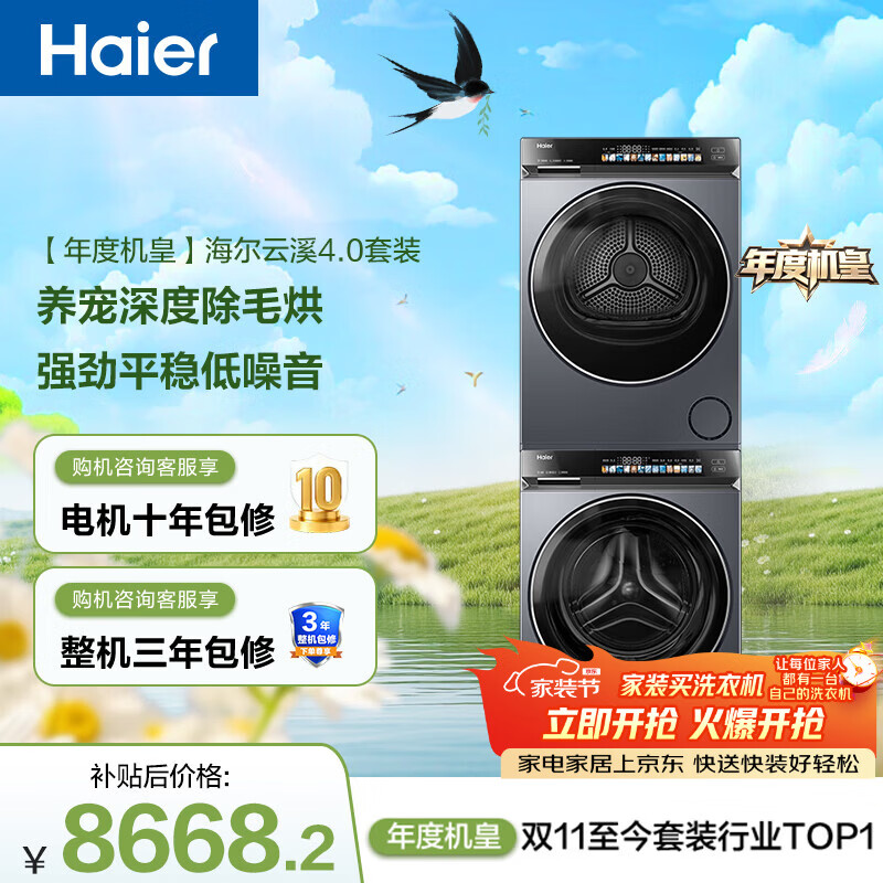 海尔(Haier)年度机皇 云溪4.0洗烘套装 直驱滚筒洗衣机全自动+双擎热泵烘干机 京东家电自营 国家补贴 583+583