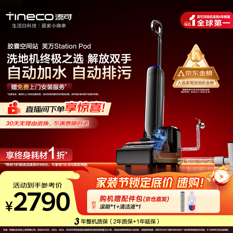 添可【一价全包】胶囊空间站芙万StationPod自动上下水躺平基站洗地机吸拖一体自动清洗扫地机器人
