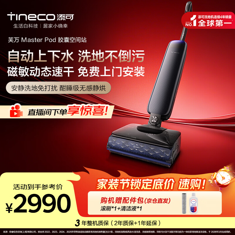 添可【一价全包】芙万Master Pod【磁敏动态速干 自动上下水】躺平0缠毛洗地机吸拖一体扫地机器人