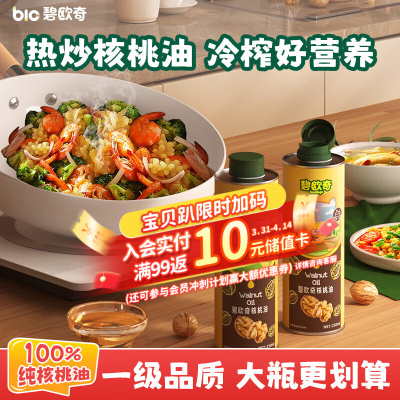 碧欧奇100%纯核桃油250ml 凉拌热炒宝宝辅食用油送6个月以上婴儿辅食谱