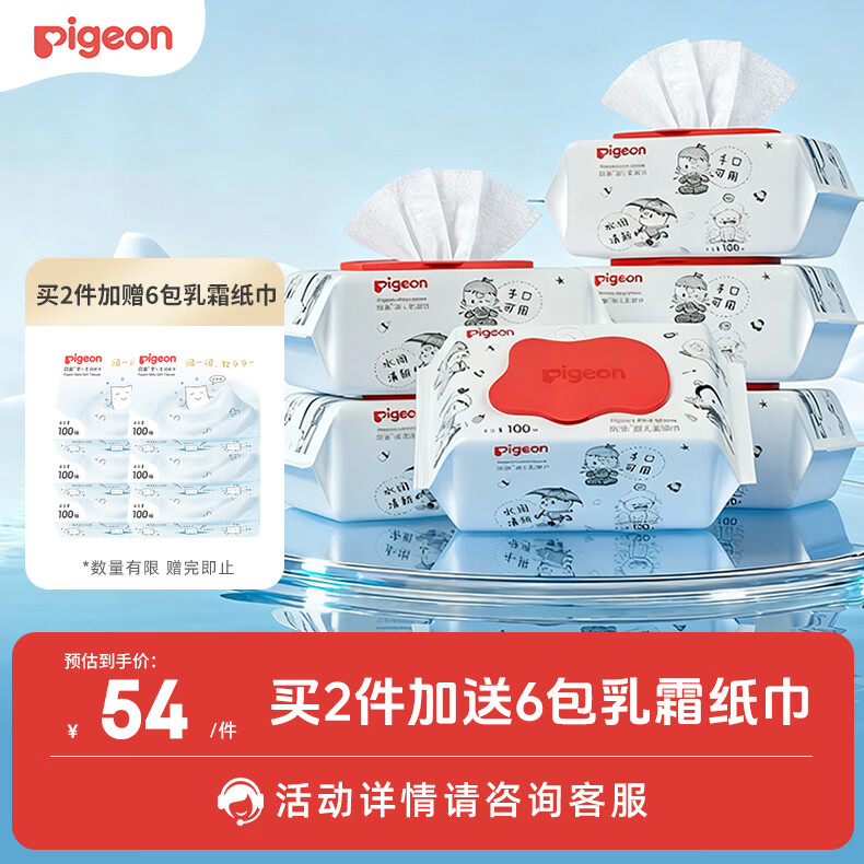 贝亲(Pigeon)新生婴儿手口湿巾亲肤加厚手口屁屁专用湿纸巾 100抽*6包 PL347