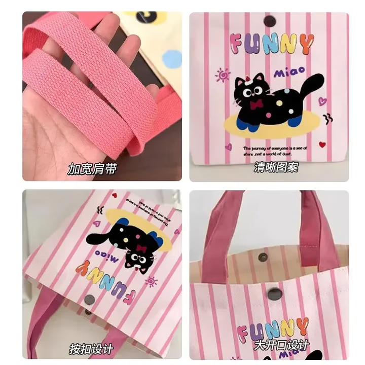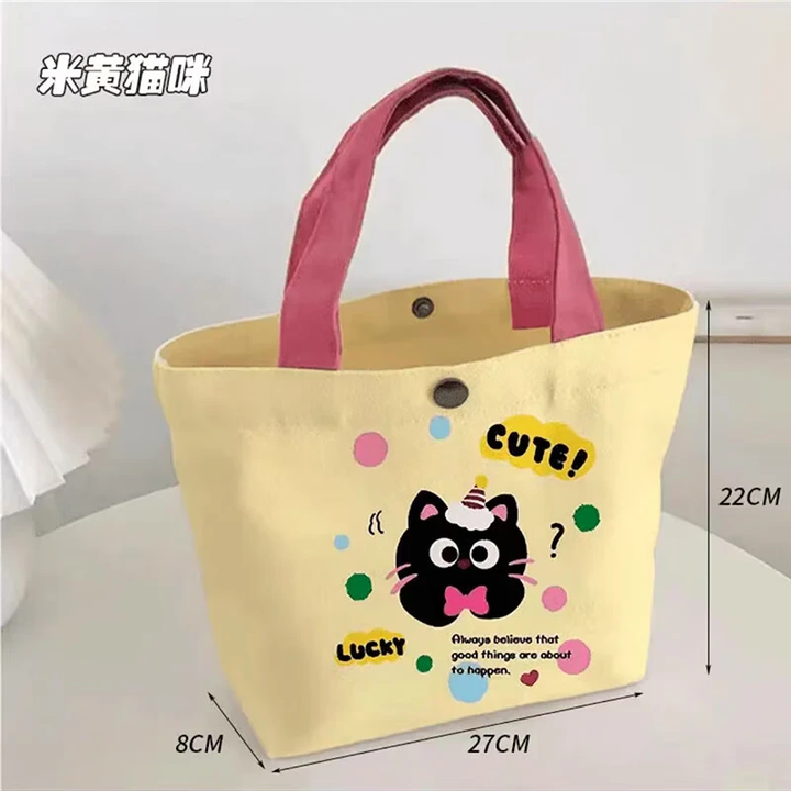 卡通帆布包新款小巧百搭手提袋女学生饭盒袋简约袋子时尚便当袋子 多巴胺【爱心熊】