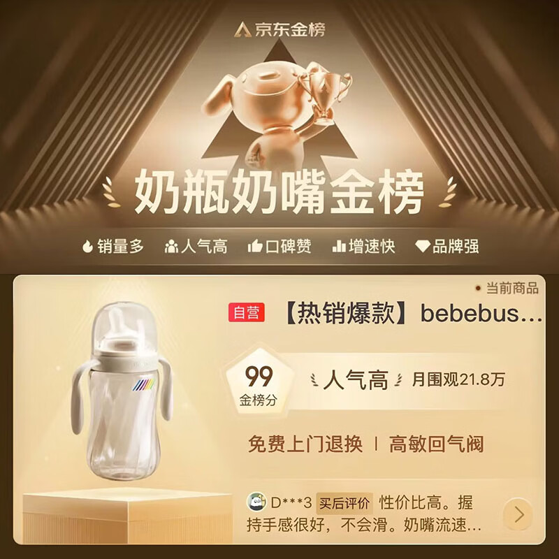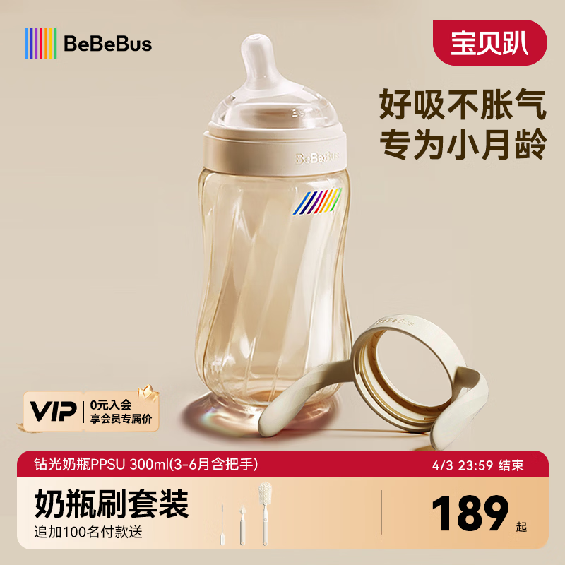 bebebus钻光奶瓶3-6个月300ml新生儿宝宝ppsu偏心仿母乳防胀气防呛奶瓶