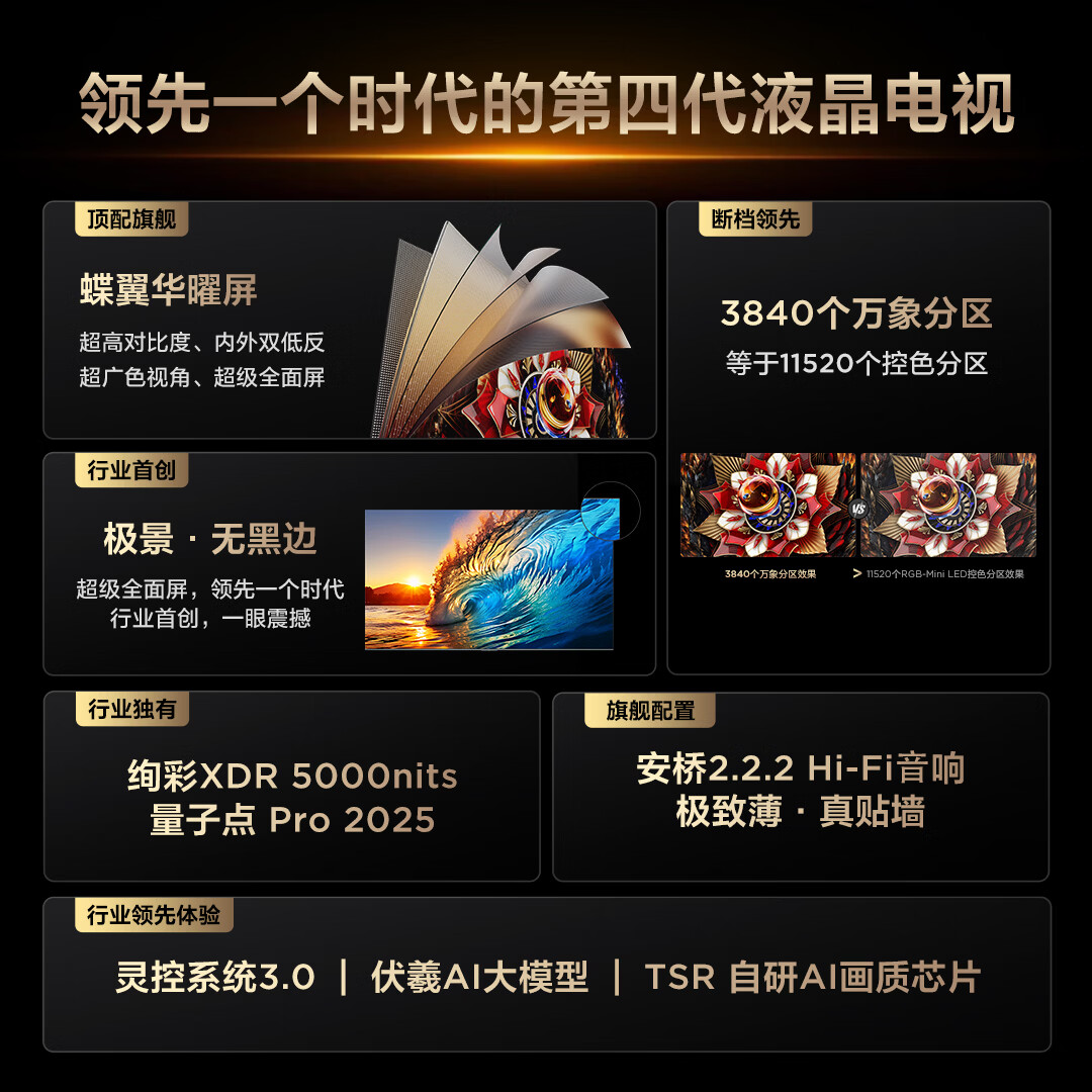 TCL电视Q10L 98英寸 极景QD-Mini LED 蝶翼华曜屏 万象分区 绚彩XDR 98/100英寸电视 护眼