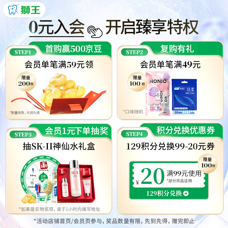 狮王(lion)细齿洁0.01弹力旋净软毛护龈牙刷2支软毛护龈弹力刷柄