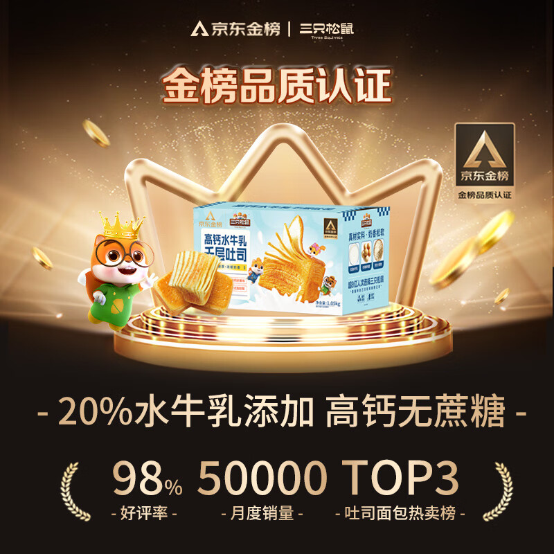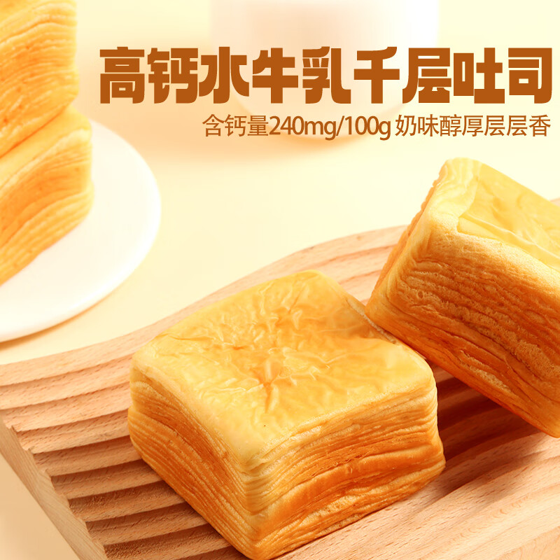三只松鼠无蔗糖水牛乳千层吐司1.05kg 高钙早餐面包手撕代餐饱腹零食点心