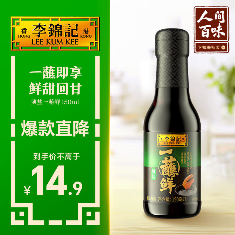 李锦记薄盐一蘸鲜150ml【减盐】海鲜刺身 点蘸凉拌 生抽酱油