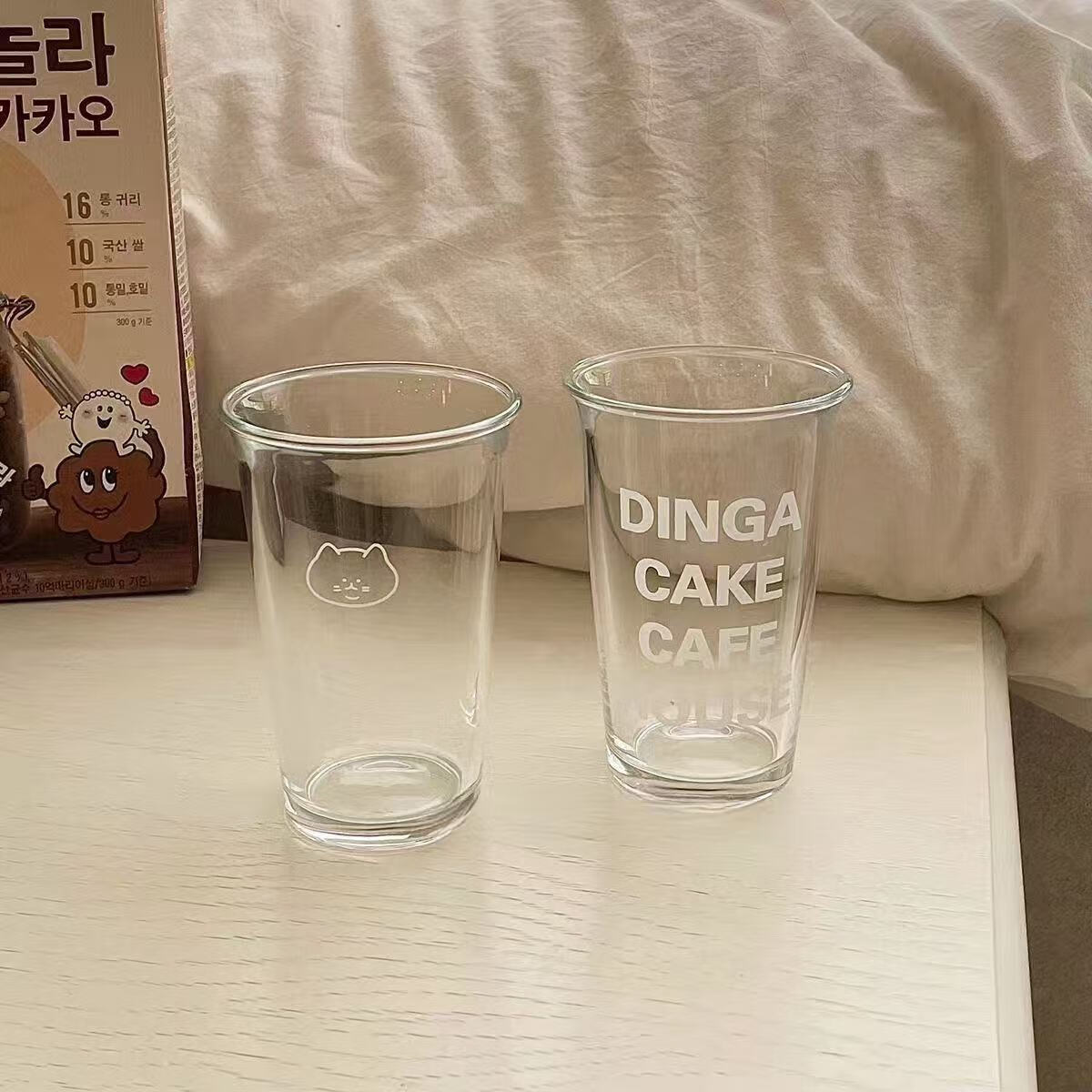 小众文创ins风杯子复古绿冰美式玻璃杯简约水杯韩式高颜值字母杯 高款猫咪 370ml