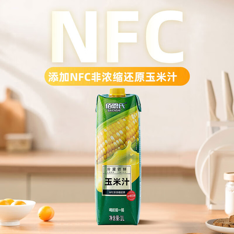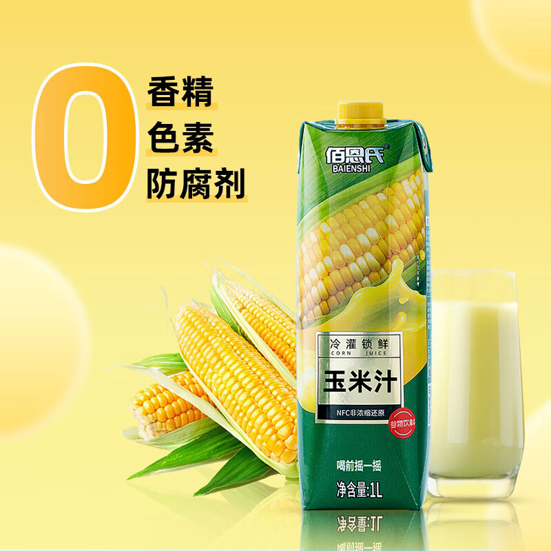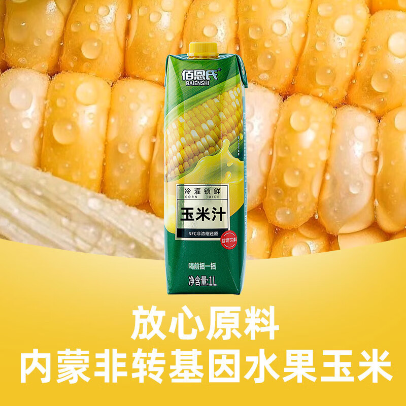 佰恩氏(BAIENSHI)水果玉米汁含NFC非浓缩还原技术果汁饮料早餐饮品【0脂】1L*1瓶