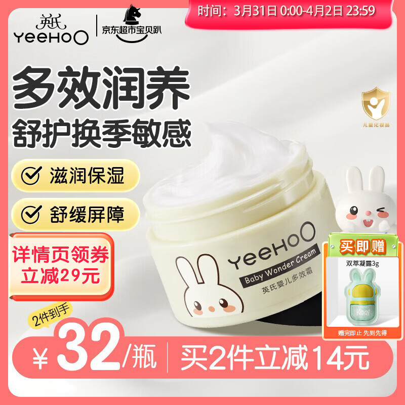 英氏儿童面霜 婴儿面霜宝宝面霜护肤凡士林 保湿霜润肤乳 多效面霜55g