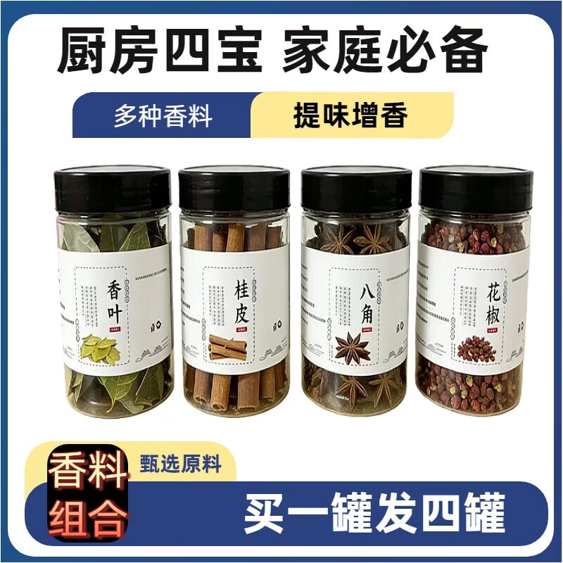 香辛料组合装6瓶香料大料八角桂皮香叶花椒辣椒小茴香组合 厨房四宝【八角30g+桂皮30g+花椒40g+香叶10g】