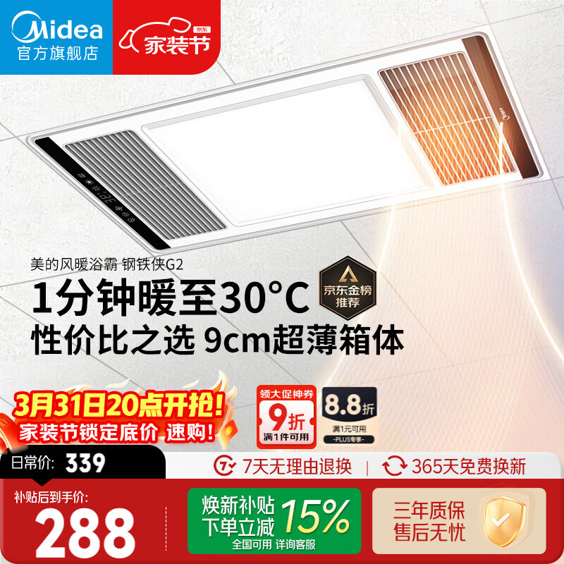 美的(Midea)风暖浴霸钢铁侠系列暖风照明排气一体换气暖风机G2