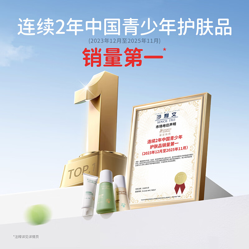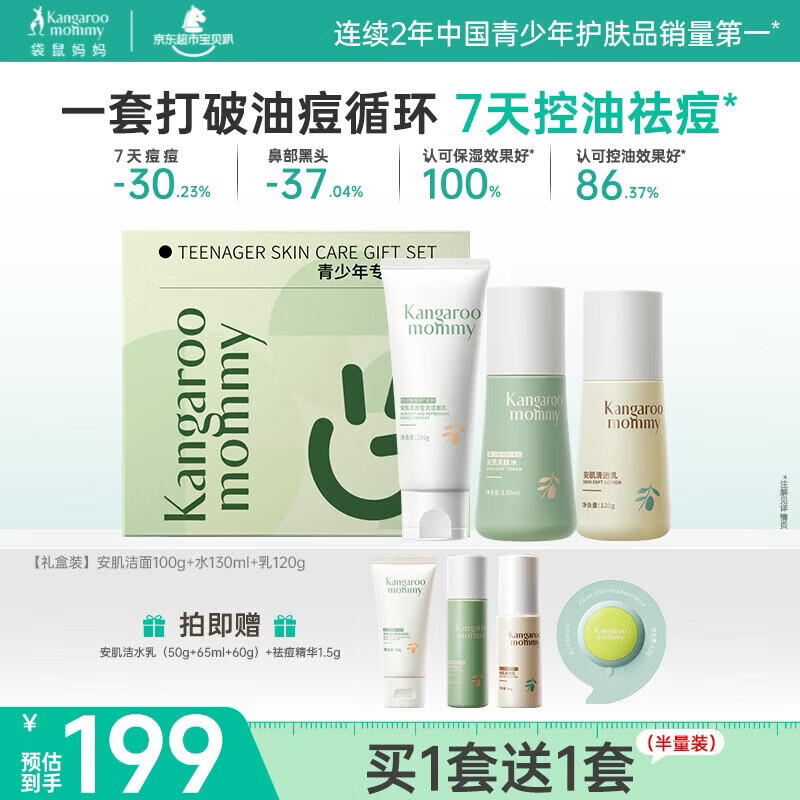 袋鼠妈妈青少年护肤套装 控油祛痘洁水乳三件套12-18岁男女孩青春期学生