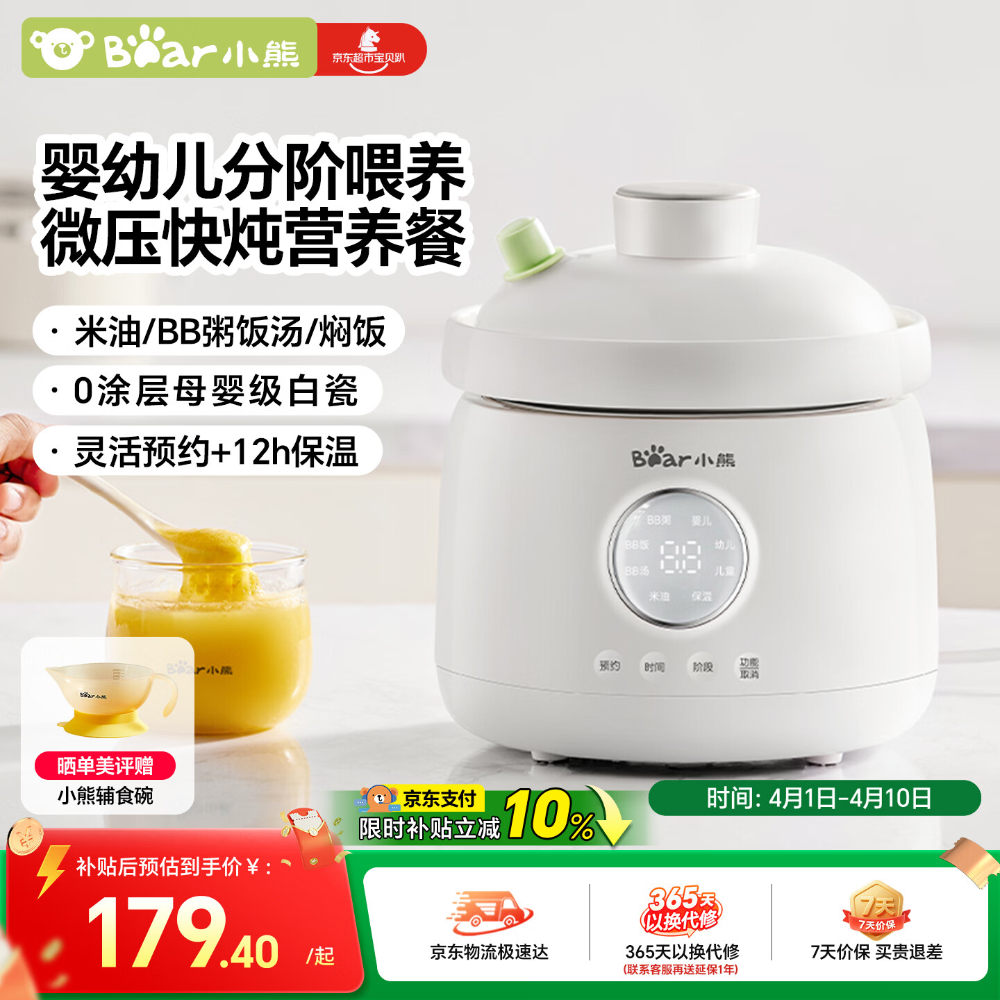 小熊(Bear)婴儿辅食锅 电炖锅陶瓷 炖煮米油分月龄直炖微压辅食料理机炖盅1L