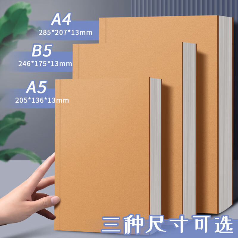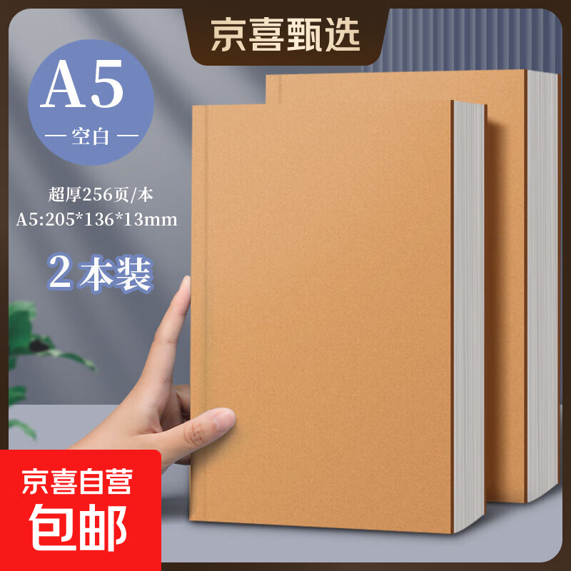 超厚笔记本本子考研牛皮本简约大学生a4大号笔记本子厚本子大横线思维导图本b5网格记事本草稿本 2本【A5/空白】超厚-每本128张/256页 无规格