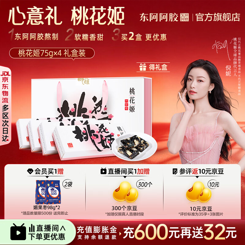 东阿阿胶官方店【倪妮推荐】桃花姬阿胶糕 早餐营养品 礼物礼盒礼品送礼 75g*4盒 礼盒装|买2更优惠