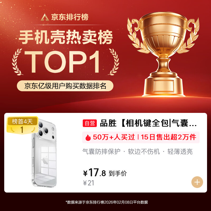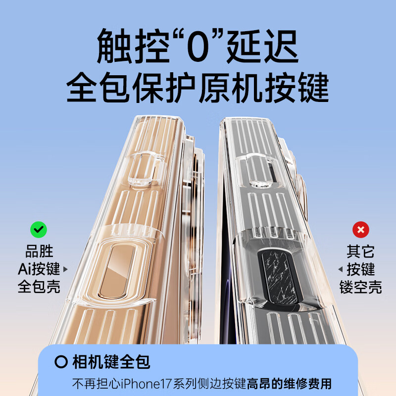 品胜【相机键全包|气囊升级】适用iphone17手机壳苹果17保护套气囊防摔晶透抗黄耐磨简约全透明保护壳