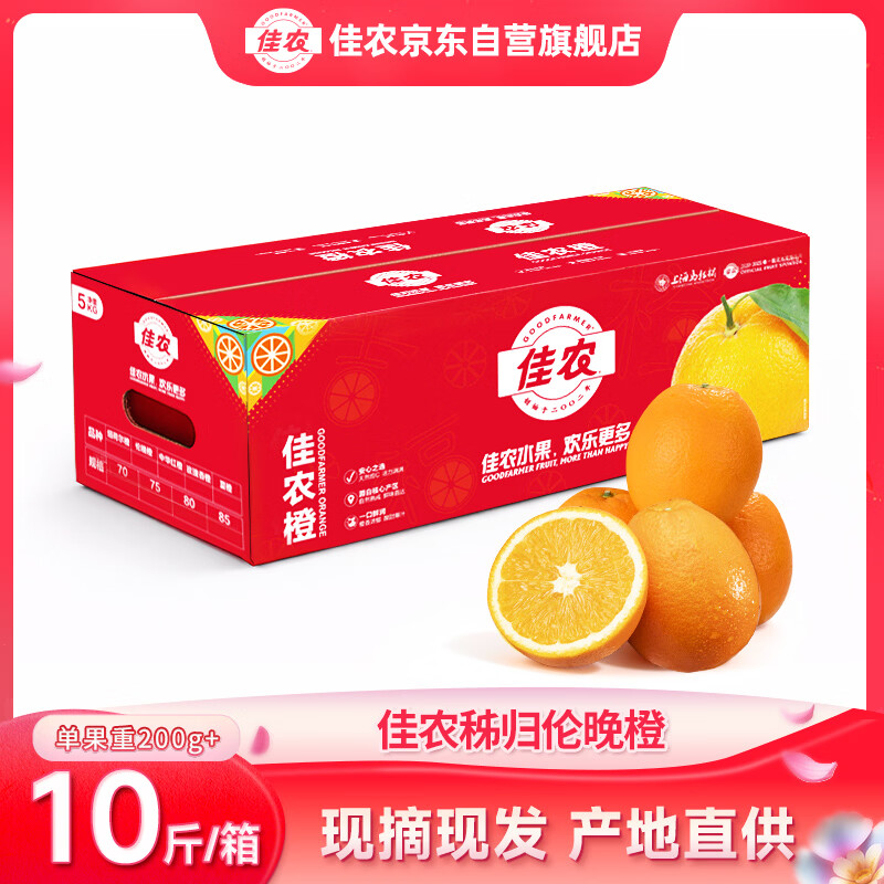 佳农秭归伦晚橙 净重10斤装 单果200g起 生鲜水果橙子礼盒 源头直发