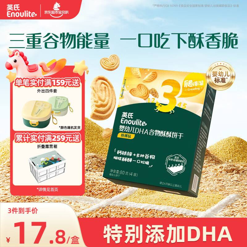 英氏(Engnice)婴幼儿DHA谷物酥酥饼干核桃味 婴儿零食儿童饼干宝宝零食80g