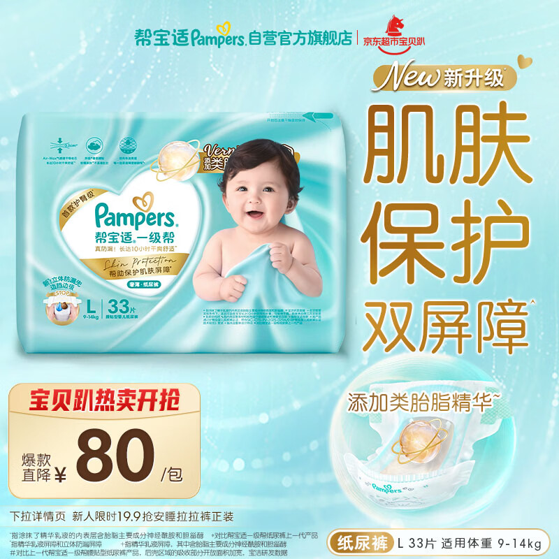 帮宝适类胎脂新一级帮新生儿婴儿防漏超薄纸尿裤L33尿不湿尿裤