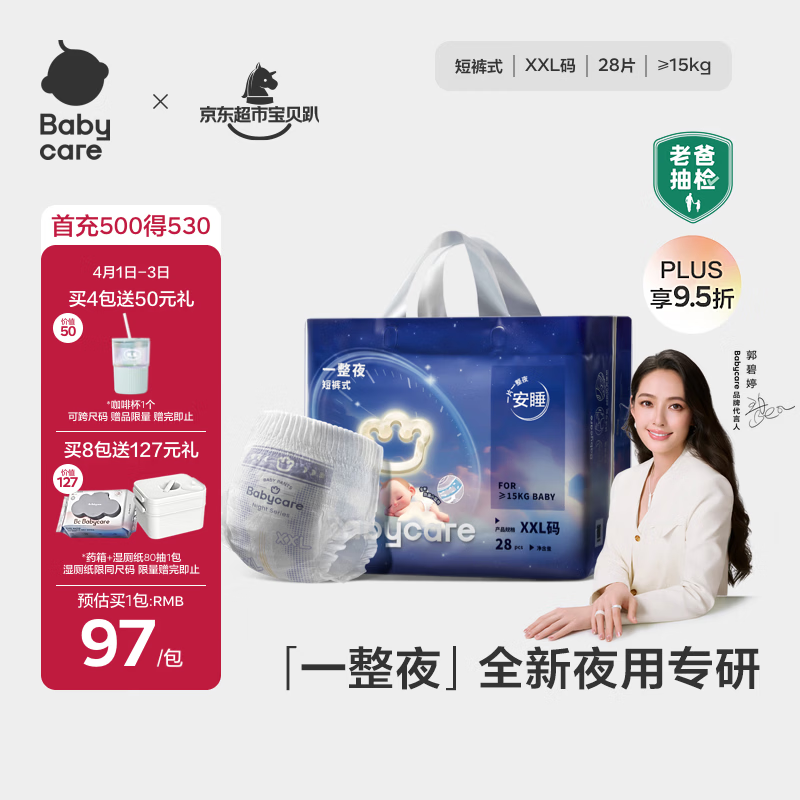 babycare一整夜拉拉裤XXL28片(>15kg)大吸量透气夜用安睡婴儿尿不湿