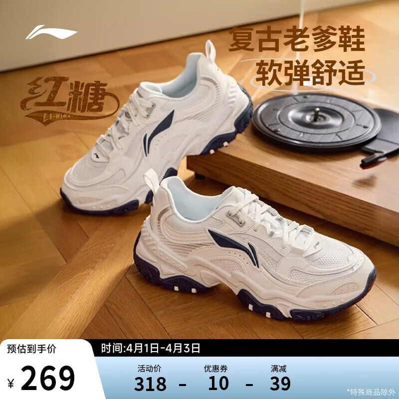 李宁红糖丨经典休闲鞋男子减震回弹潮流复古轻量柔软运动鞋AGCV127