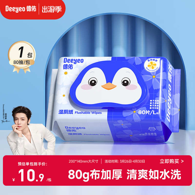 德佑湿厕纸金盏花款80抽 清洁湿纸巾厕所湿巾 温和亲肤无刺激 可冲散