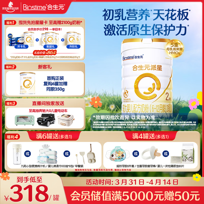 合生元(BIOSTIME)派星 较大婴儿配方奶粉 2段(6-12个月) 800g1罐 法国进口