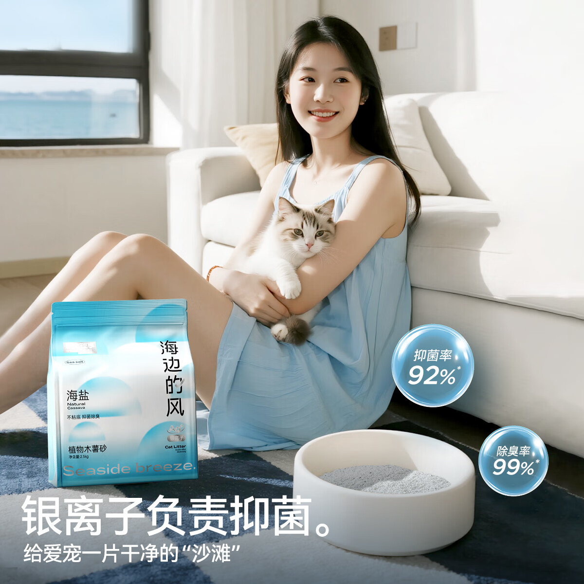 城市理享海边的风高效抑菌纯植物木薯猫砂2.5kg*1 无香低敏强结团近无尘