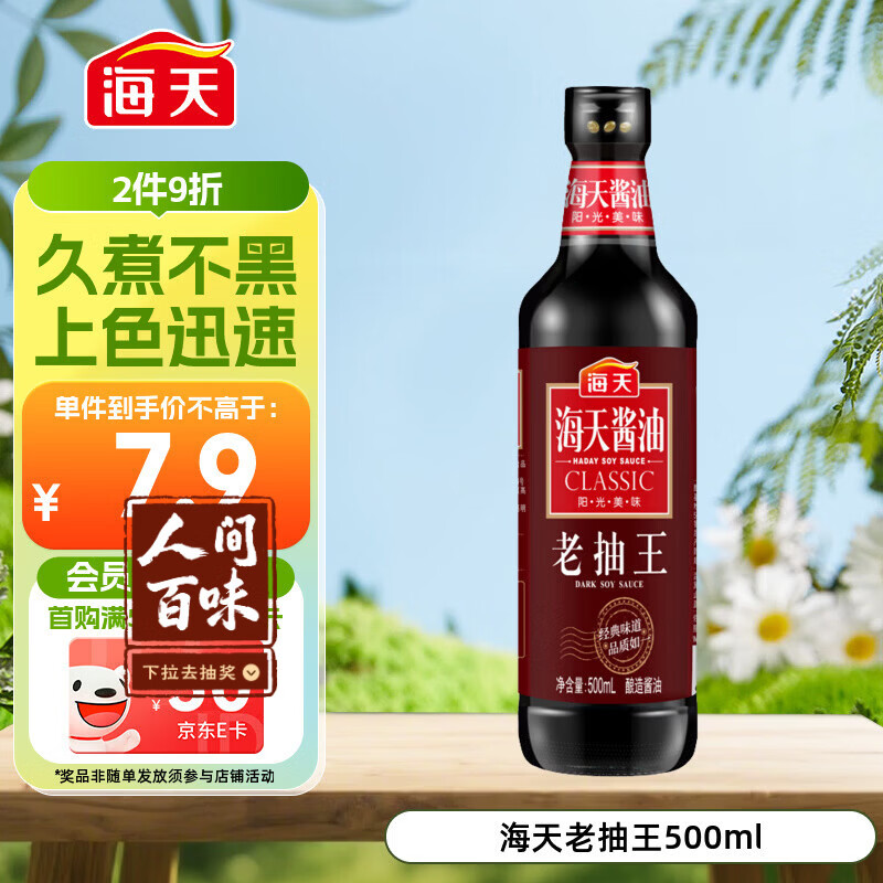 海天 老抽王酱油500ml【酿造酱油】经典系列 0添加防腐剂红烧