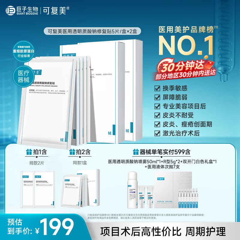 可复美医用透明质酸钠修复贴椭圆型(25g*5片/盒*2盒)