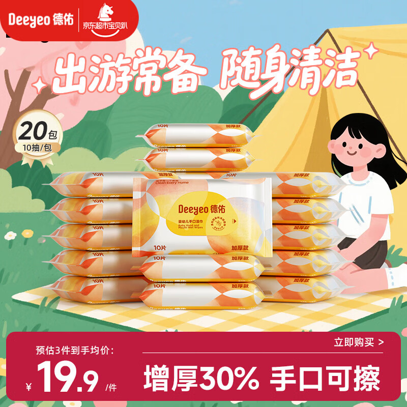 德佑湿巾小包 婴儿手口屁屁专用 加厚10抽*20包 宝宝便携出行湿纸巾