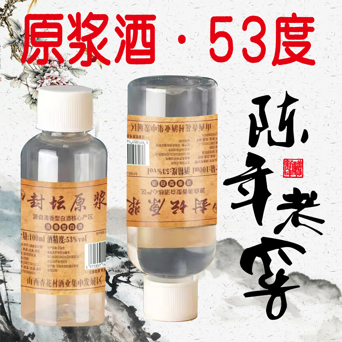 42度53度山西杏花村汾酒产地纯粮原浆清香型散酒纪念酒 53度 100mL 1瓶 封坛原浆【尝鲜款】