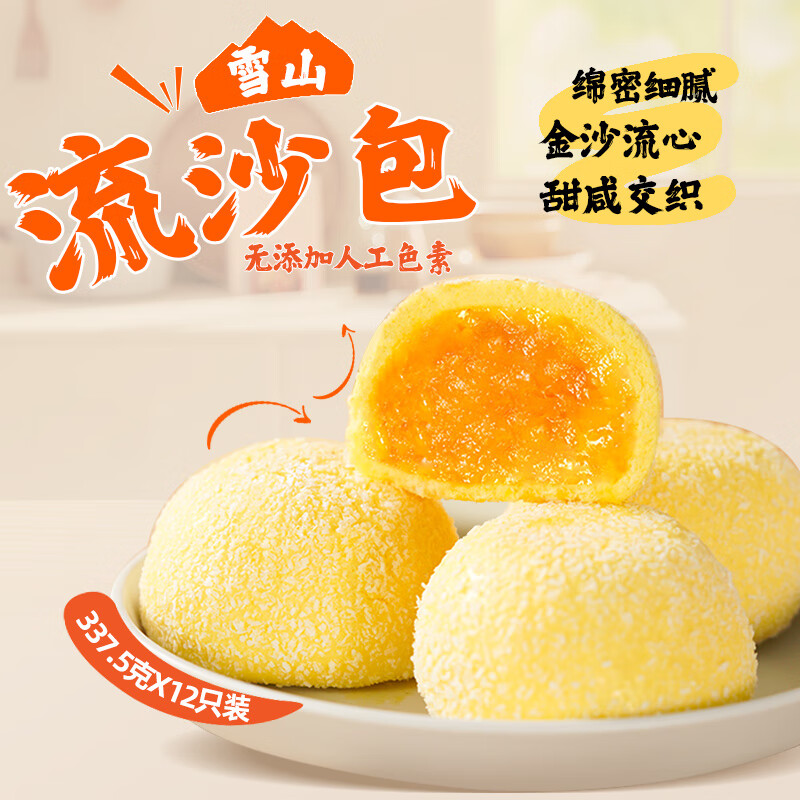 广州酒家雪山流沙包225g*3袋 18个 儿童早餐 速食包子包子早茶开学季
