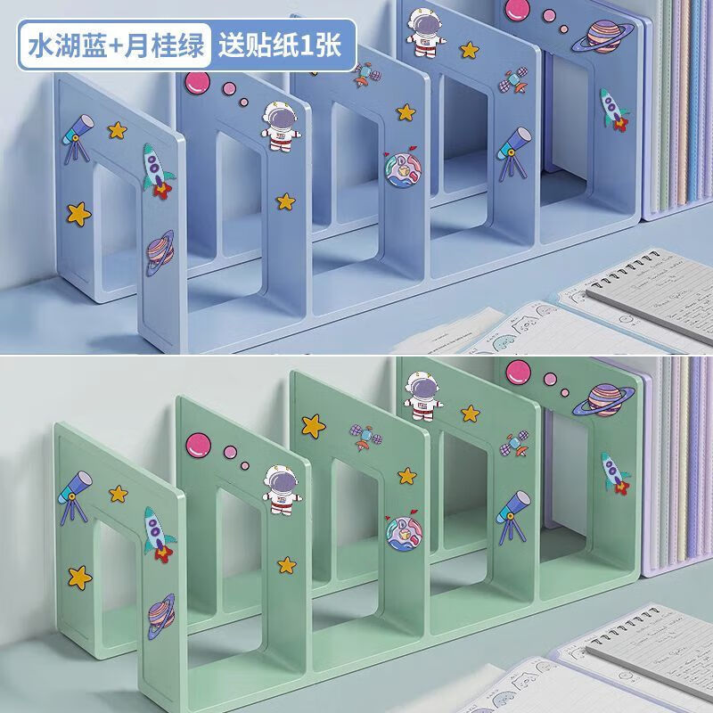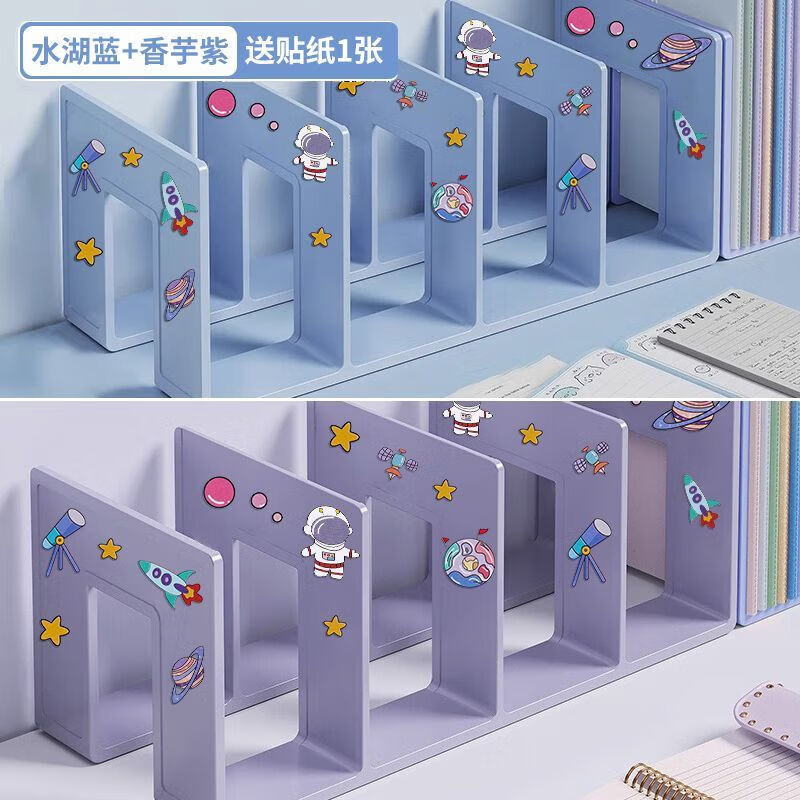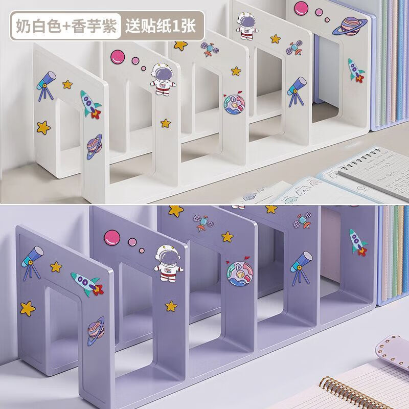 宇航员书立架固定书本收纳神器高中学生儿童书夹书桌桌面书报架 四栏-奶白色书立【班主任推荐/特厚更耐用】