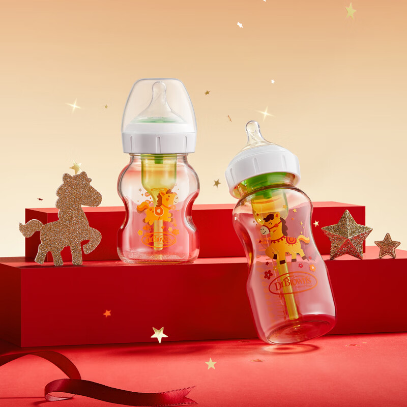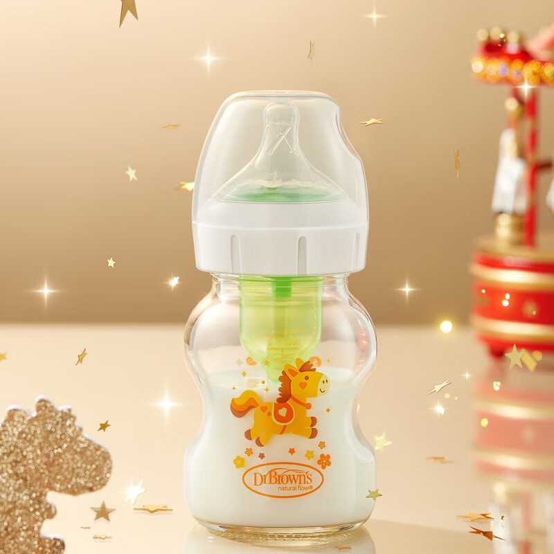 布朗博士0-3月新生儿防胀气防呛玻璃奶瓶 宽口径150ml马年奶瓶爆款