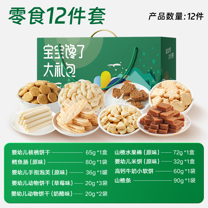 宝宝馋了宝宝零食大礼包12件套山楂棒饼干奶片泡芙米饼儿童节日礼盒