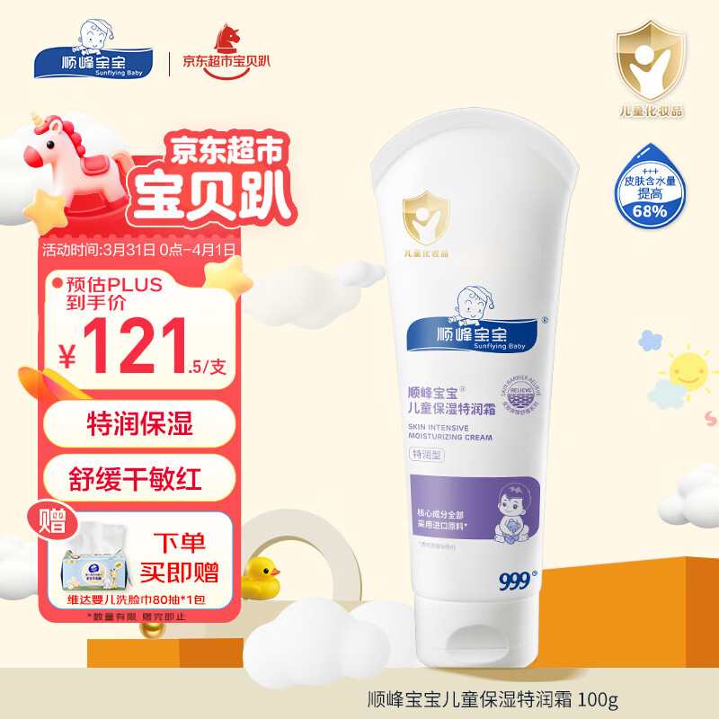 顺峰宝宝特润霜100g 宝宝婴儿保湿面霜舒缓干燥敏感皮肤青少年面霜特润型
