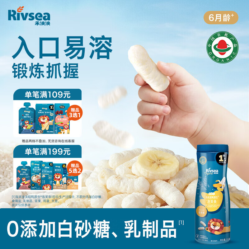 禾泱泱有机婴幼儿高钙泡芙条香蕉味 宝宝婴儿零食 稻鸭原生低敏32g 6月+