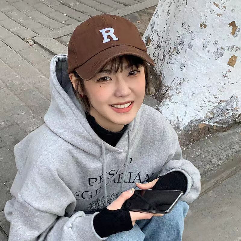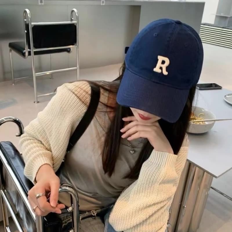 【热巴同款】加大棒球帽帽子男女大头围显脸小春夏字母百搭棒球帽 刺绣款-蓝色