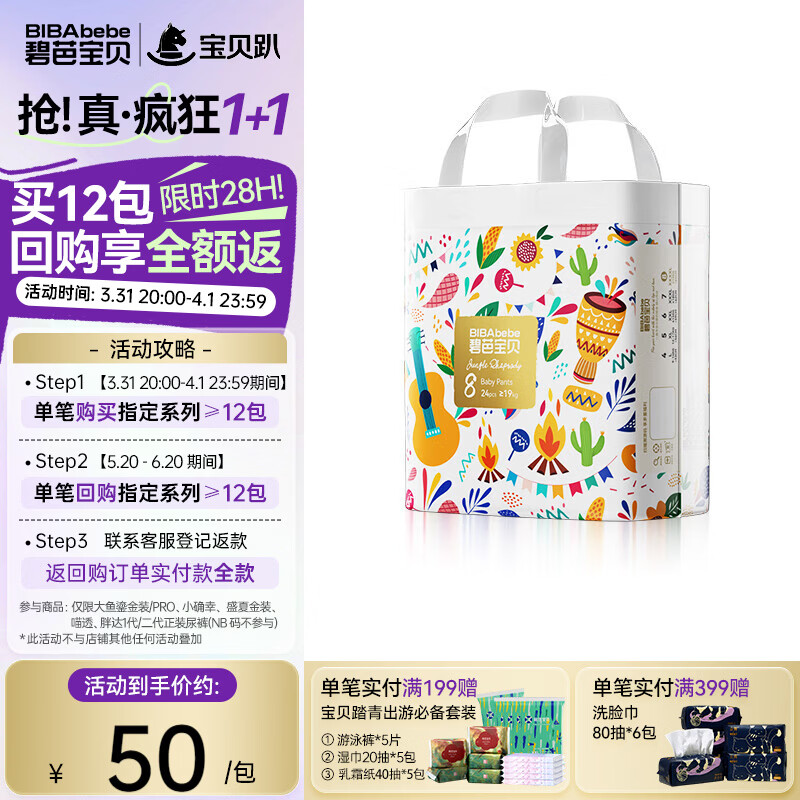 碧芭宝贝丛林狂想曲拉拉裤 婴儿成长裤宝贝训练裤透气大号尿不湿 拉拉裤XXXXL24片(19kg以上)